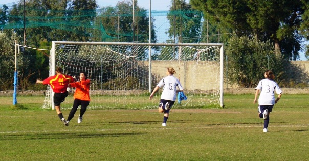 Insomma, è stato un bel vedere le ragazze nel disegnare le loro geometrie di giuoco che portavano in rapida successione a numerose occasioni da rete, non sempre trasformate ma pur sempre lodevoli. Le ospiti hanno deluso forse sorprese dal gran ritmo delle padrone di casa che hanno schierato una perfetta Lupo in porta a sostituzione della squalificata Amalfa. Si comincia a tutta birra e dopo due occasioni sciupate, al 5’ la Grillo supera l’estremo ospite spezzando l’equilibrio iniziale.