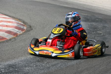Il pilota giardinese alla guida del suo Kart durante la prima prova del campionato regionale di Brolo: