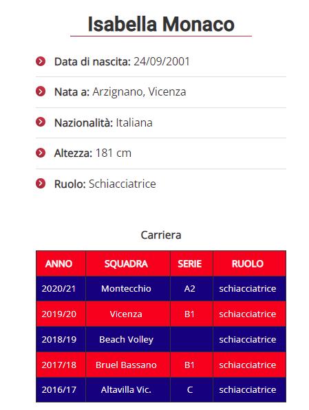 Nelle ore scorse l’Amando Volley ha reso noto la partenza del forte libero toscano Geraldina Quiligotti che ha accettato le sirene della Serie A1 della compagine Delta DesparTrentino Volley. A distanza di poco tempo l’annuncio del nuovo libero amandino, direttamente dal Veneto, precisamente da Vicenza arriva il classe 20021 Isabella Monaco nata ad Arzignano, alta 181 cm, ha rivestito in passato anche il ruolo di schiacciatrice.